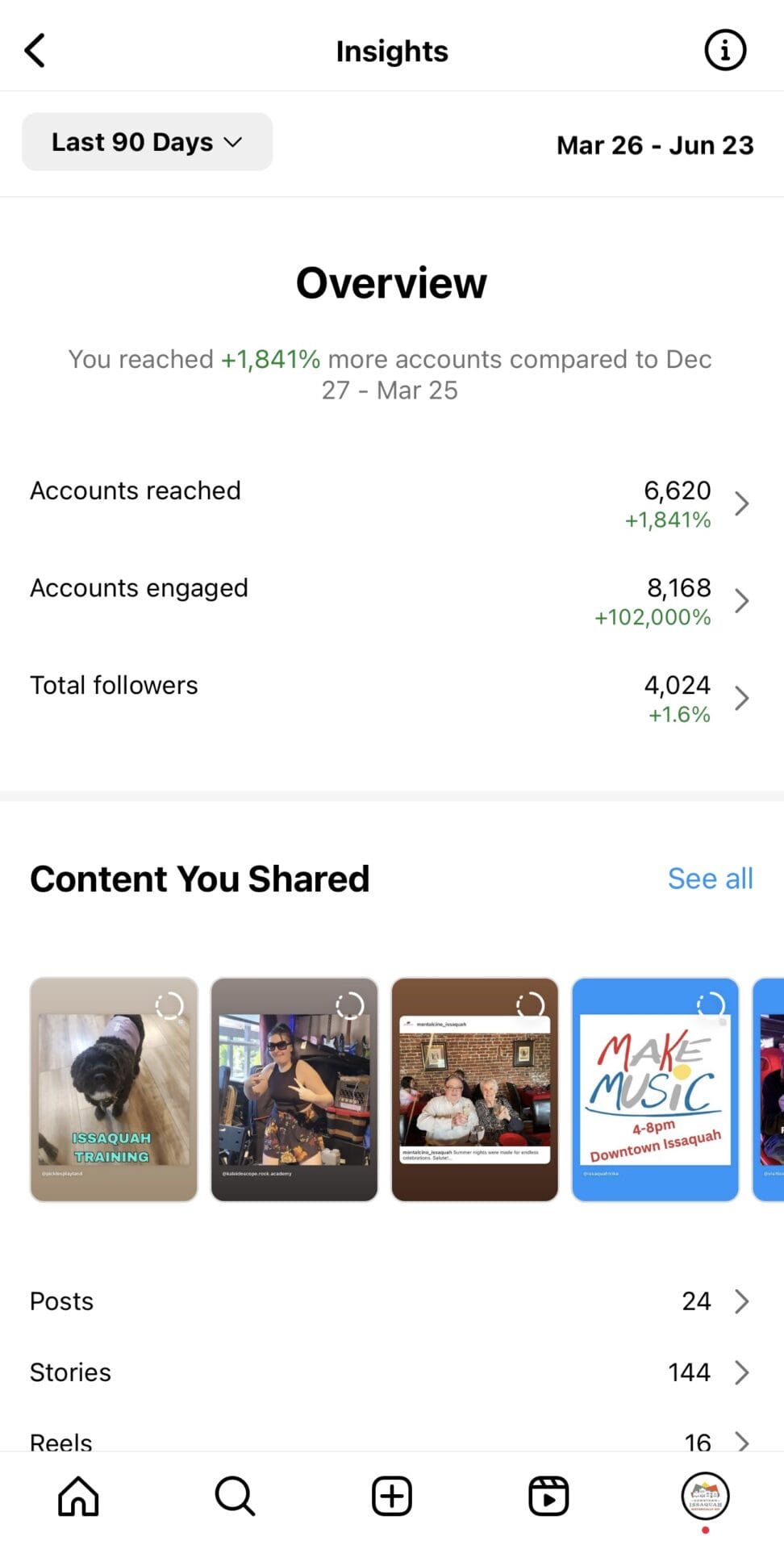 I don’t just manage your social media; I dive deep into the heart of your business. Through in-person visits and an immersive understanding of your brand, community, and goals, I infused every post, story, and reel with heartfelt passion & creativity.